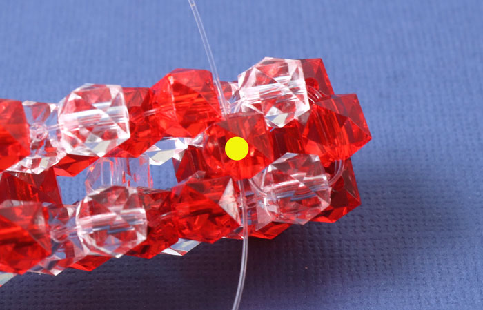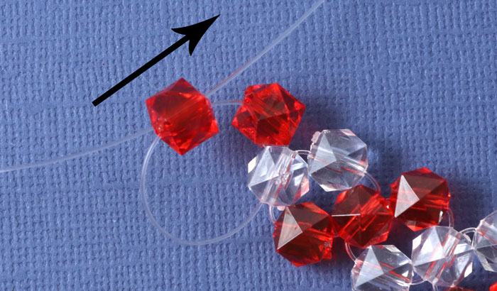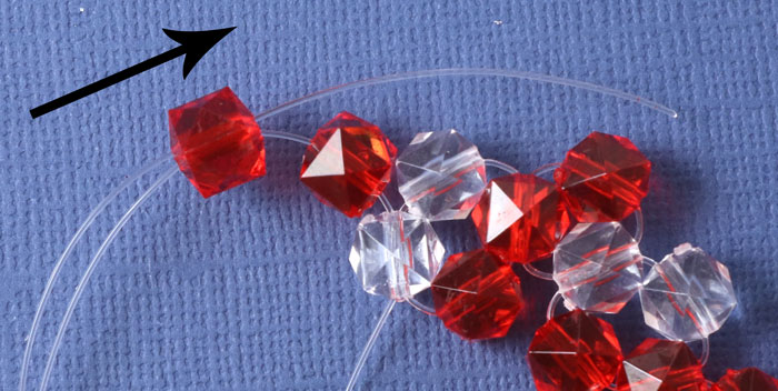 Thread another red bead and form another circle. (This time you need 3 red beads in a row.)