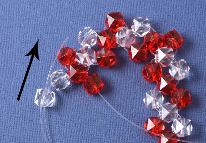 Turn your piece of work so that the top two clear beads are on the left (see picture).