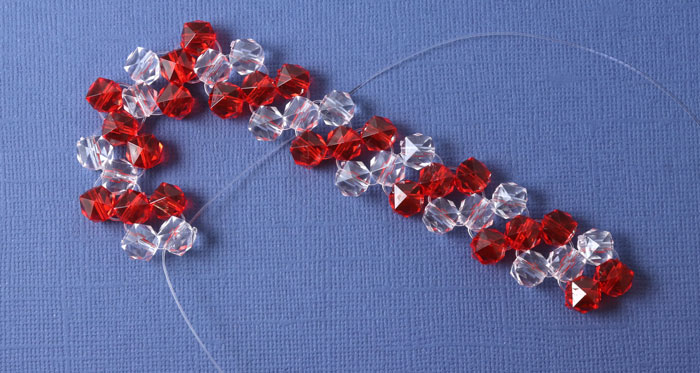 Continue in this manner, adding one bead at a time along the entire length of the candy cane. Check that the pattern matches.