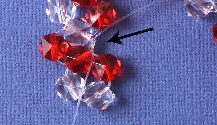 Then you pass the right thread through the 2nd clear bead (see picture).