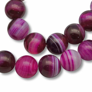 6pcs., dyed banded agate beads, round, diameter 10mm, hole size 1.2mm.